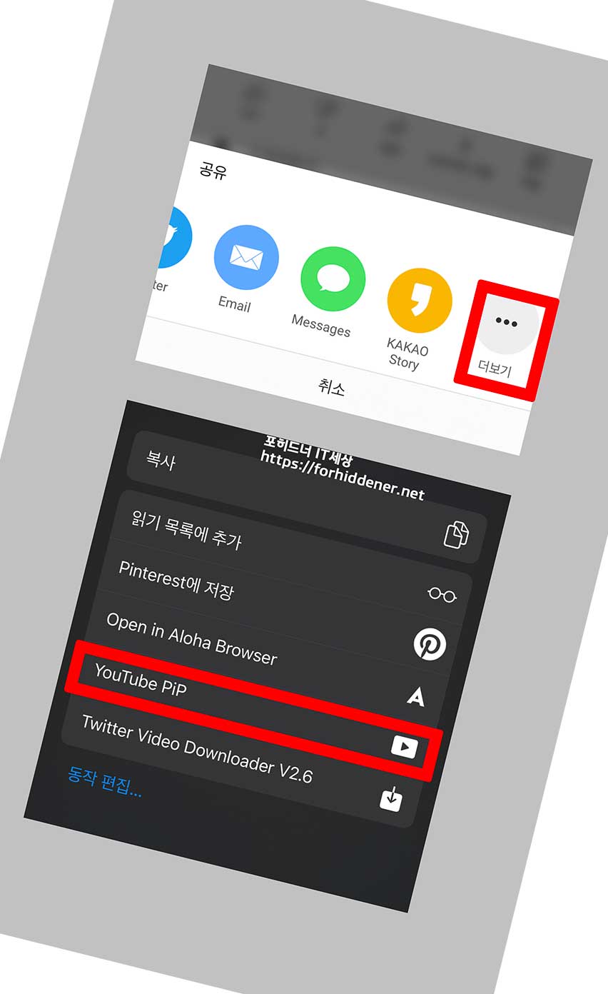 아이폰 유튜브 작은화면 띄우기 YouTube PiP 기능을 사용 하려면? 공유 > 더보기 > YouTube PiP 순서대로 들어갑니다.
