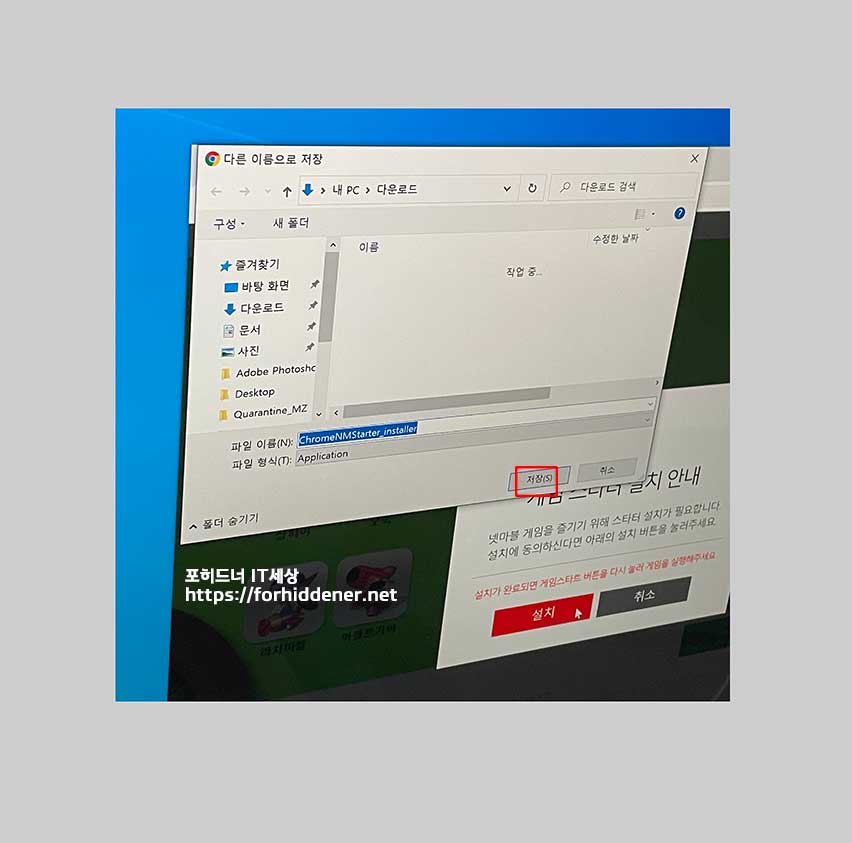 Windwos 10 (윈도우즈10)에서는 다른 이름으로 저장 하는 창이 나올 것입니다. 크롬 브라우저 사용시에 이런 화면이 나오면? 저장을 누릅니다.