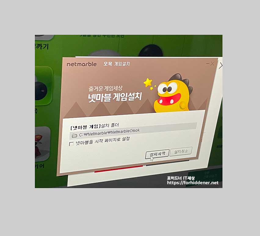 이전에는 스타터 install 을 한 것이고 이제 본게임 설치 입니다. 인스톨이 되는 경로는? C드라이브 > Netmarble 폴더에 저장이 됩니다. 공식 주소에 시작 페이지로 자동 체크가 되어있는데, 메타검색 엔진으로 인터넷을 시작하기를 원하시면? 사진과 같이 시작 페이지로 설정에 체크해제를 한 후에 [설치시작]을 Click 합니다.