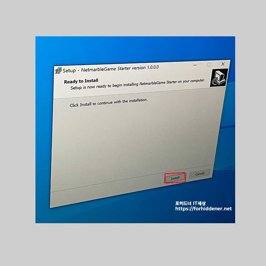 Netmarble 의 모든 게임을 설치할때는 순서를 보면? 스타터 Starter 를 먼저 install 한 후에 본 게임을 인스톨 하는 순서로 진행이 됩니다. 스타터 설 치 를 클릭합니다.