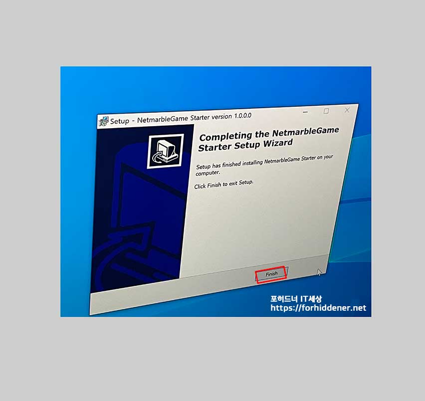 넷마블 오목 다운로드 후에 설치 단계인데, 본 게임이 아니라 Game을 실행하기 위한 모듈인 Starter install 단계입니다. Completing the NetmarbleGame Starter Setup Wizard 설치마법사 위자드 창이 뜨면서 Finish 마치기가 보일 것입니다. 클릭을 하면? 이제 본게임을 즐기기에 과정 중 60%는 끝났습니다.