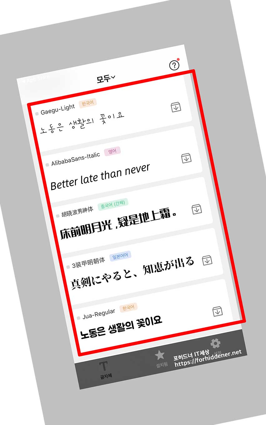 아이폰 글씨체 변경 을 하기 위해 방금 내려받은 폰트를 확인하려면?