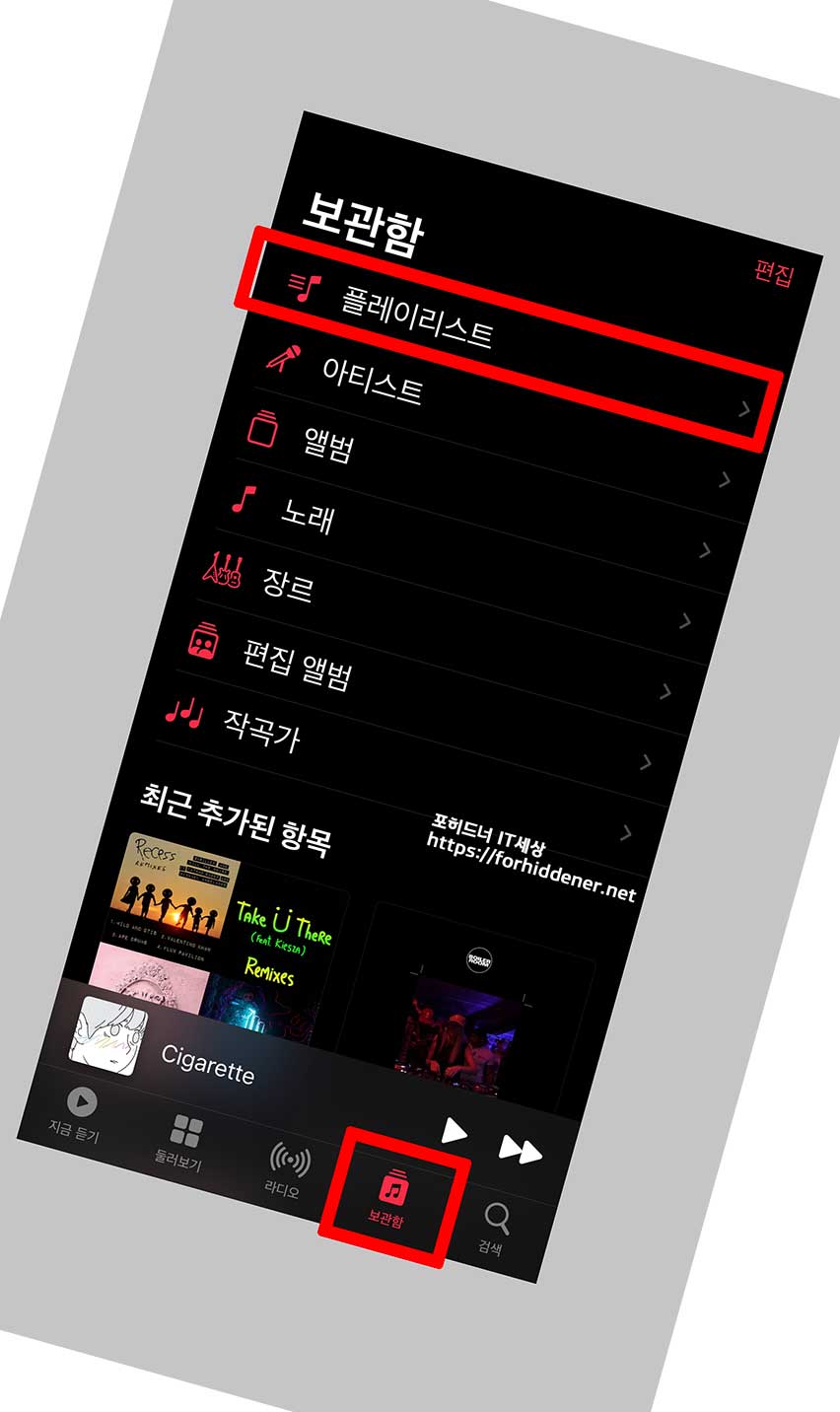 하단의 [보관함] - [플레이리스트] 에 들어가면?