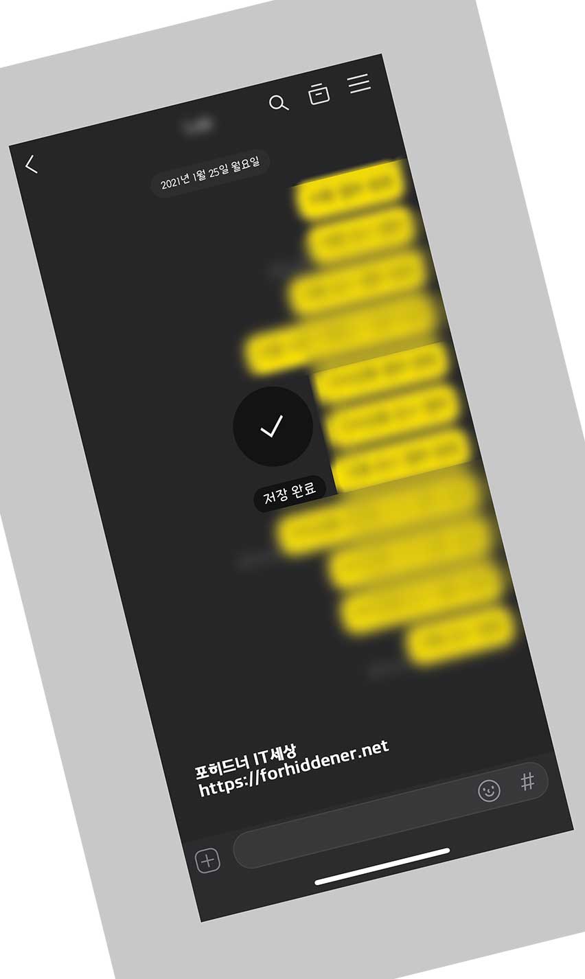 카톡 캡쳐 알림 - 채팅시 스크린샷을 찍으려면 말풍선 시작점과 끝점 영역을 잡으신 다음 좌측 하단에 있는 다운로드 아이콘을 클릭하면? 사진과 같이 저장 완료 메시지가 나오며 [앨범] 또는 [갤러리]앱에 들어가면