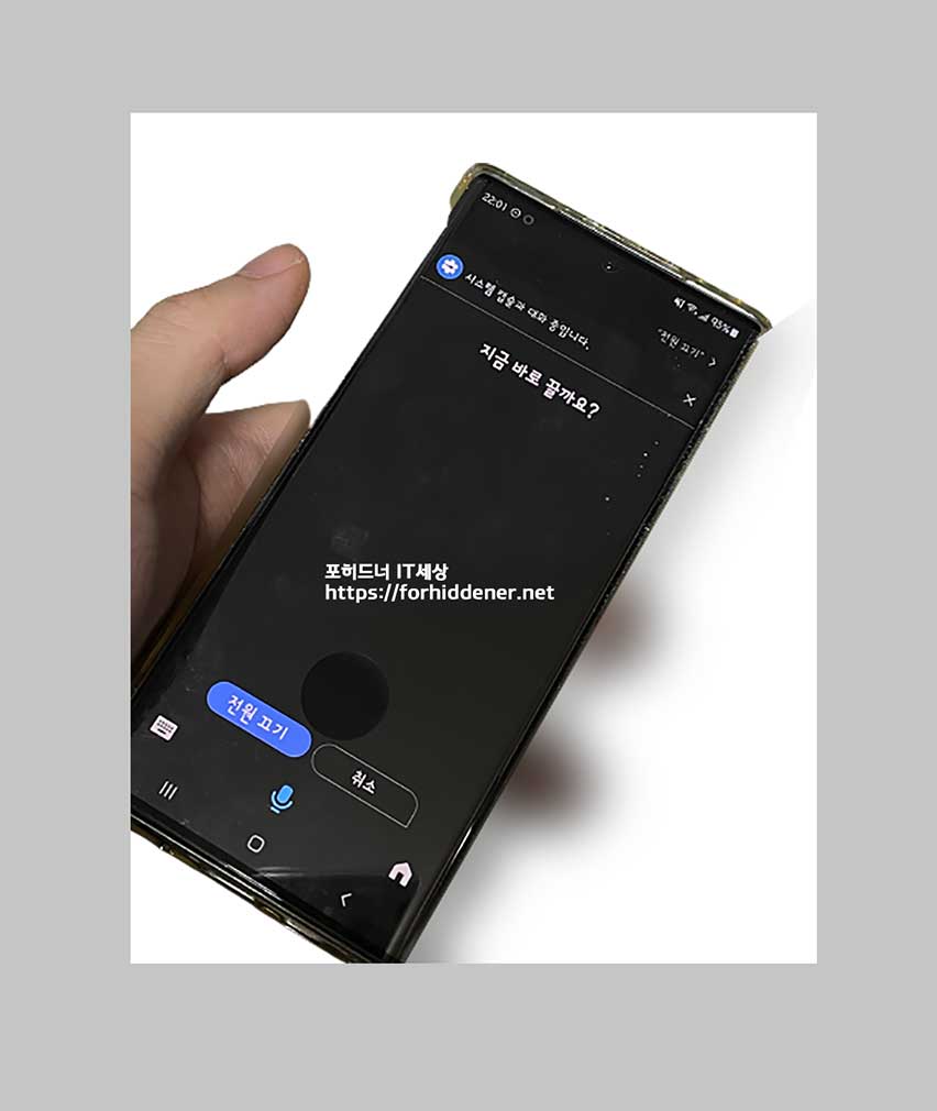 사용법은? 아주 간단합니다. 스크린샷과 같이 음성명령으로 '전원 끄기' 라고 말을 하면? 아래와 같이 똑똑한 비서인 빅스 Bixby 가 음성명령을 알아듣습니다.