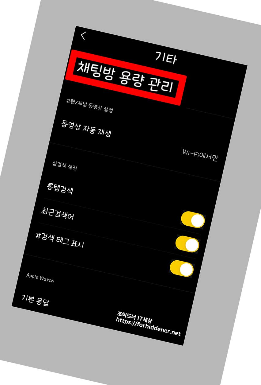 기타 > 채팅방 용량 관리 항목에 들어가야 합니다.