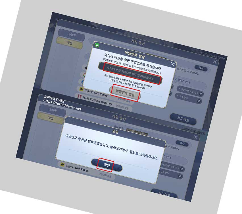 위와 같이 비밀번호 생성 이라는 창이 뜹니다. 패스워드는 최소2글자 이상 최대 12자 까지 입력이 가능합니다. 암호를 생성하셨다면? 비번 생성을 클릭하면 두번째 첨부한 스크린샷과 같은 화면이 나올 것입니다. [확인]을 Click 하면?