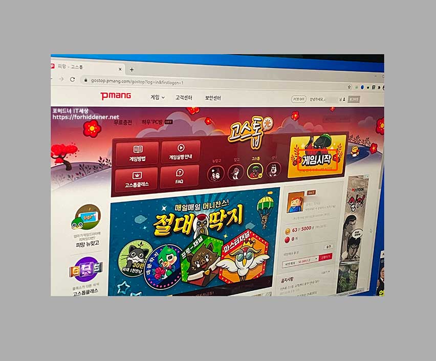 바로 이렇게 [방만들기] , [바로입장], [선택입장], 내가방, 친구, 이벤트, 케스트, 상점, 채널명 (일반, 자유) 가 보입니다. 오리지널 Pmang Go-Stop game이 아닌 뉴맞고 https://forhiddener.tistory.com/238