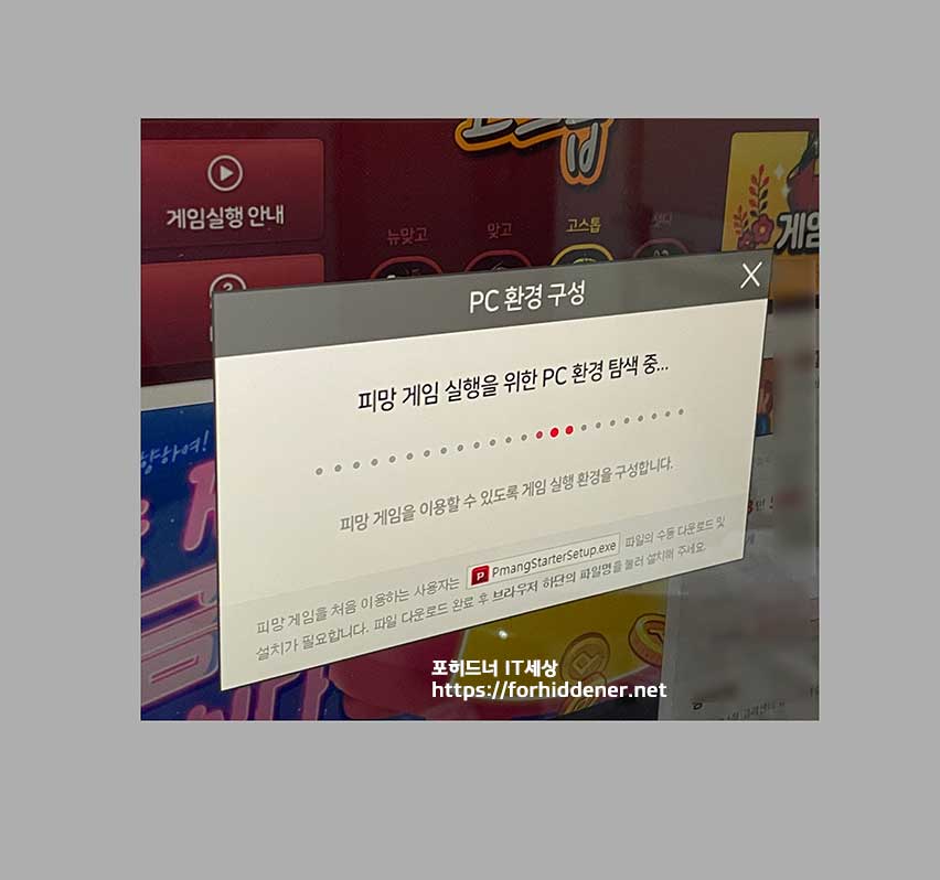 Pmang Game 실행을 위한 PC 환경 탐색 중.. 이라고 나오며 아래와 같이