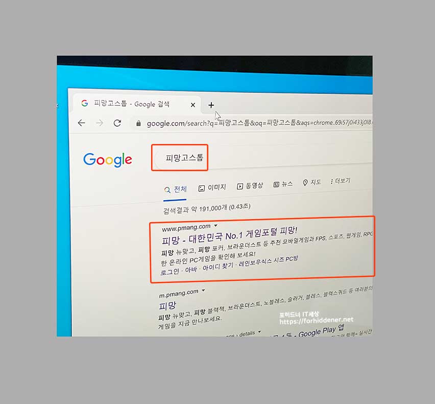 Google 에서 첨부한 스크린샷과 같이 '피망고스톱' 으로 검색을 합니다. (바로가기) 를 이용해셔도 좋을것 같습니다. Game 사양이 높지 않기 때문에 저사양의 컴퓨터에서도 문제 없이 Play가 가능합니다. 참고로 게 임의 권장 사양은 아래와 같습니다.