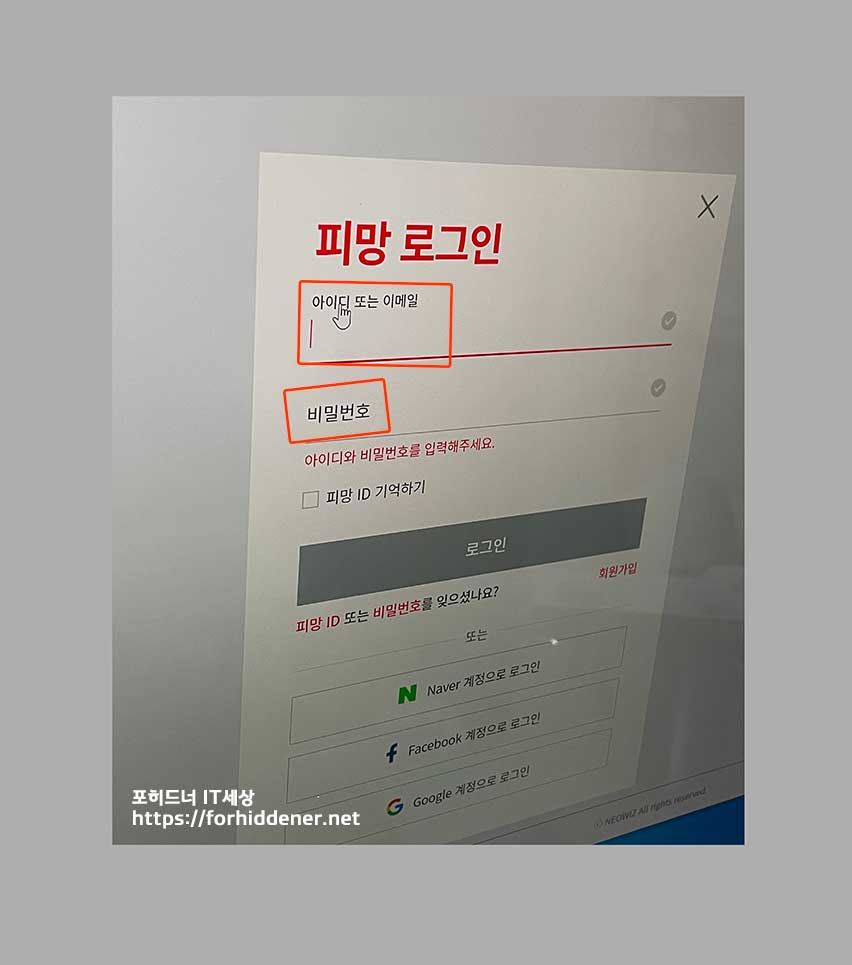 회원가입을 먼저 진행하신 후에 '아이디 또는 이메일' 주소와 함께 비밀번호를 입력해 로그인을 합니다.
