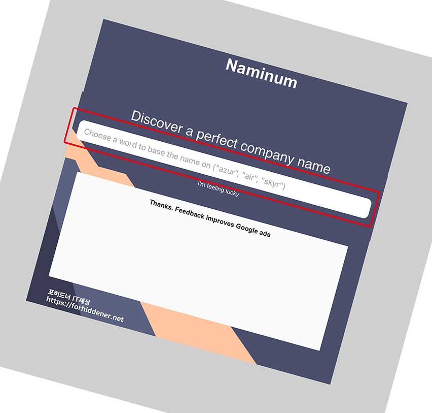 Naminum (바로가기) 입니다. 이곳은 첫번째 소개한 사이트와 다르게 '한글' 입력은 불가능하고 영문으로만 단어를 입력하셔야 합니다. 특징이라면? 단어의 끝에 붙는 단어를 자동조합으로 만들어주는 site로 아래와 같이
