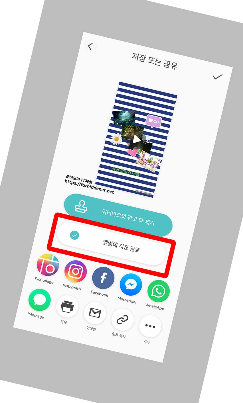 위와 같이 '앨범에 저장 완료' 라고 문구가 뜹니다.