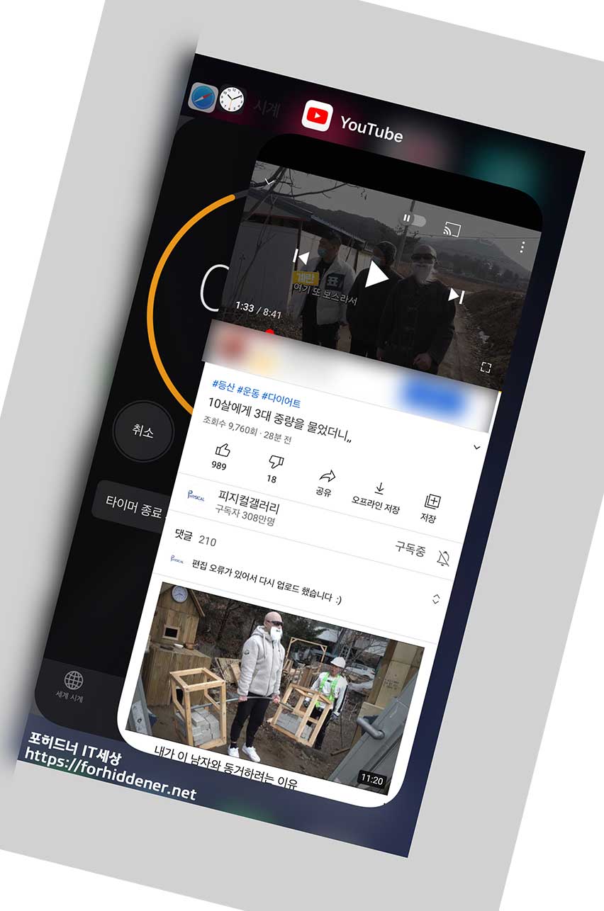 위와 같이 YouTube 앱이 백그라운드 앱에서 켜져있긴 하지만 동영상 재생중이 아니라 '일시정지' 중단 되어 있는것을 확인할 수 있습니다. 취침을 하기전에 알림을 받는것도 물론 좋지만, 자동으로 끄기가 된다면 더 좋을 것입니다. 소리가 나오다가 설정해놓은 time이 되면 일시정지가 되서 수면에 방해가 되지 않을것 같습니다. 이상 지금까지 "유튜브 자동종료 시간설정" 취침예약 하는 방법에 대해 배워봤는데요~ 오늘 내용 도움이 되셨나요? 글을 끝까지 읽어주셔서 감사합니다.