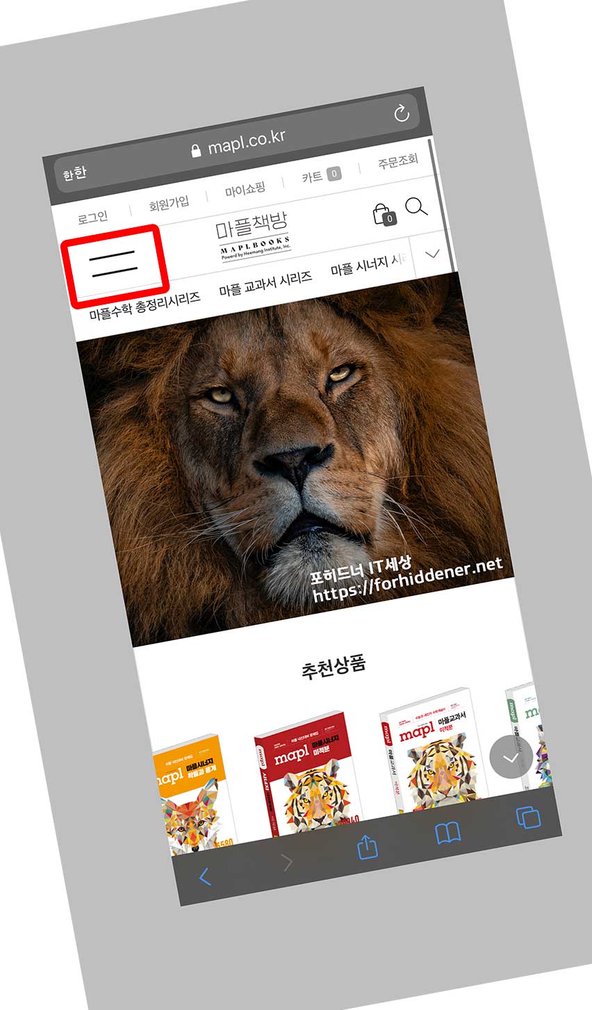 백수의 왕 사자 이미지가 나올것입니다. 왼쪽 상단에 있는 가로 세줄 아이콘을 Click 합니다.
