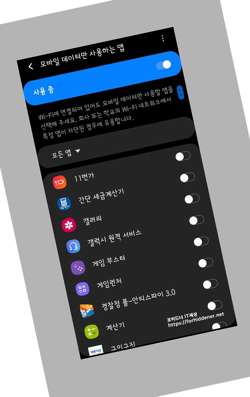 모바일 데 이 터만 사용하는 앱을 사용자가 원하면?