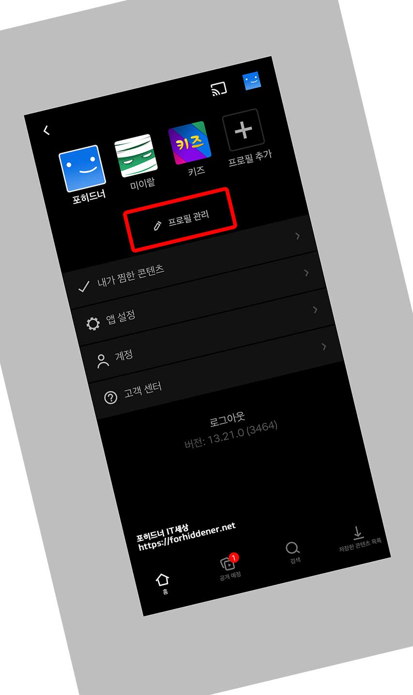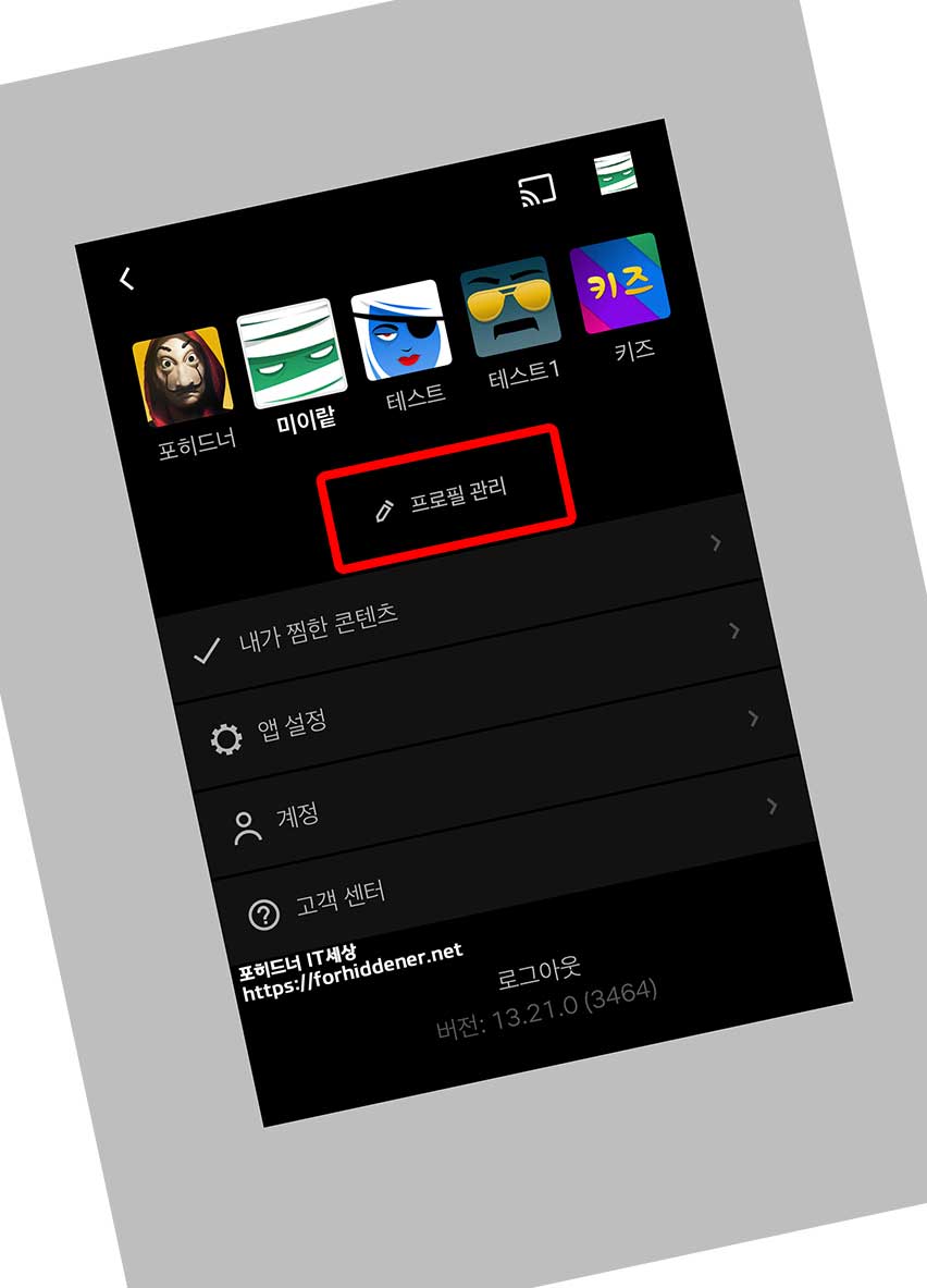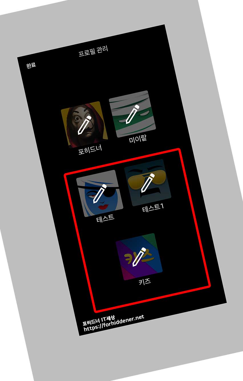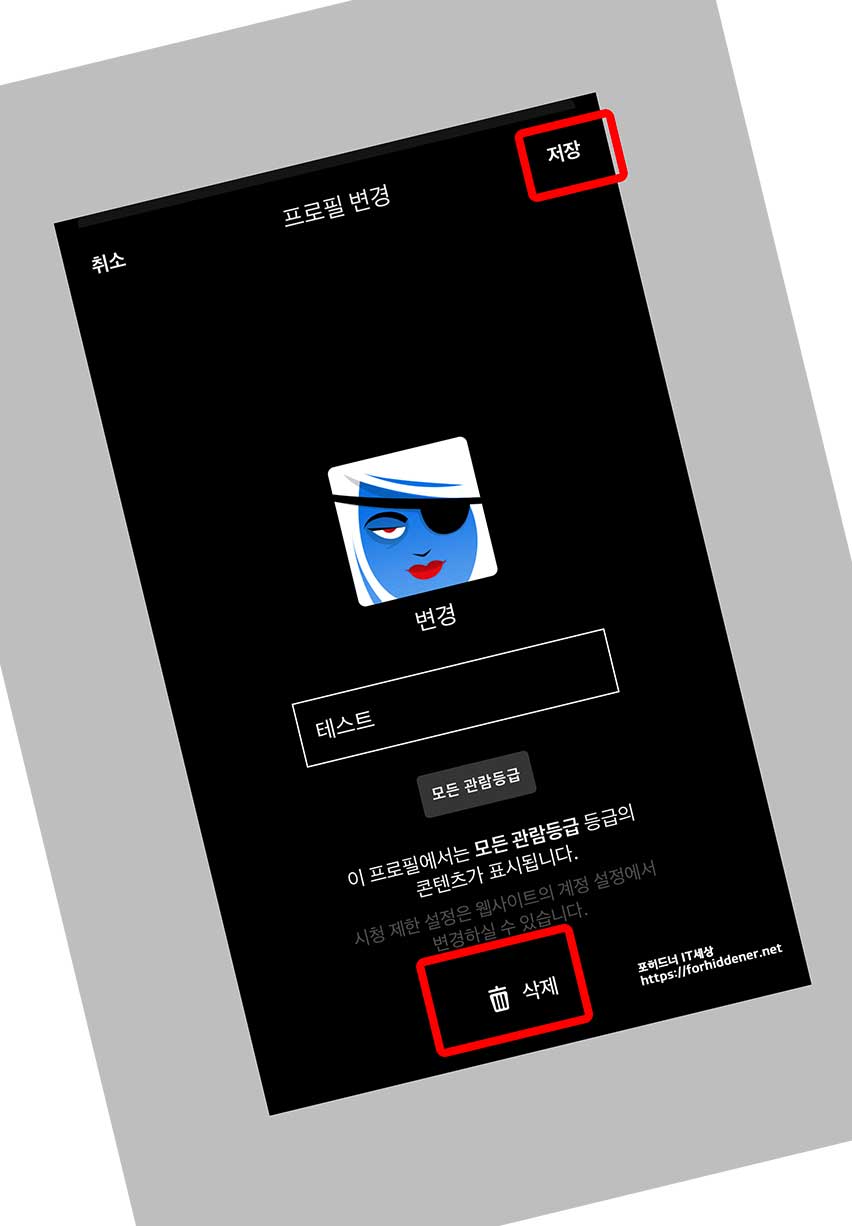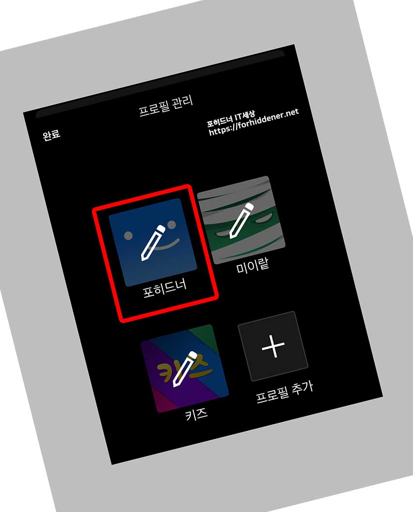기본 프로필은 두개는 사용자가 제거를 하고 싶어도 삭제를 할 수가 없고, 키즈 는 가능합니다. [프로필 관리]에 들어가시면