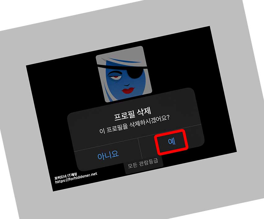 기본 2개를 제외 하고 추가로 만든 프로필의 경우에는? 이렇게 프로필 관리에 들어가서 '삭제'를 할 수가 있습니다.