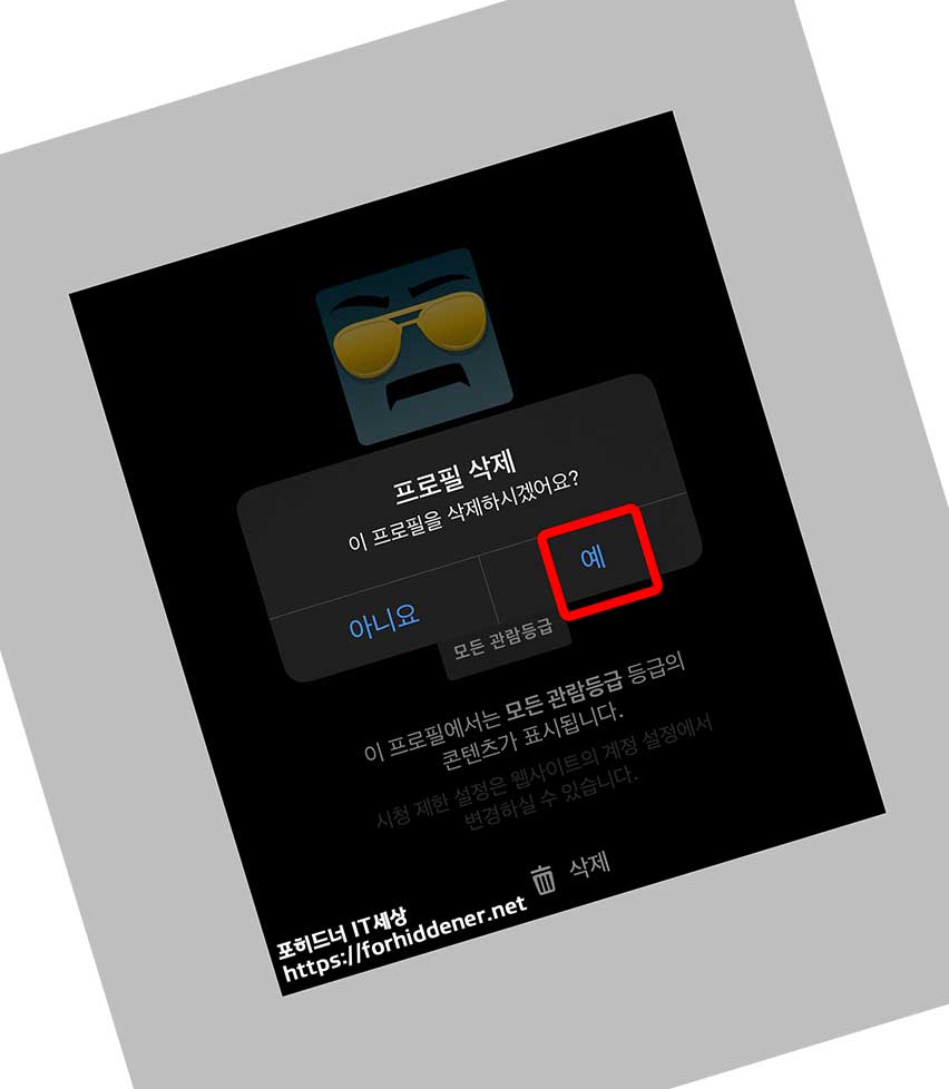 기본 2개를 제외 하고 추가로 만든 프로필의 경우에는? 이렇게 프로필 관리에 들어가서 '삭제'를 할 수가 있습니다.