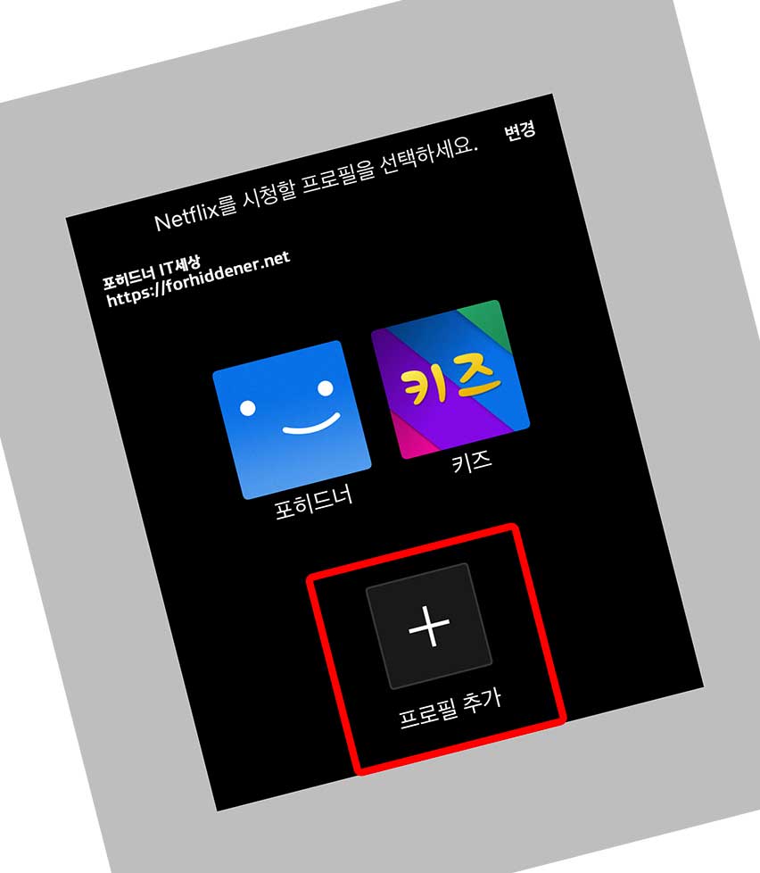 기본 프로필은 두개는 사용자가 제거를 하고 싶어도 삭제를 할 수가 없고, 키즈 는 가능합니다. [프로필 관리]에 들어가시면