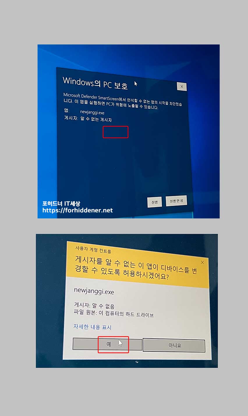 Windows 의 PC 보호 마이크로소프트 디펜더 스마트스크린에서 인식할 수 없는 앱의 시작을 차단했습니다. 이 앱을 실행하면 PC가위험에 노출될 수 있다고 경고하는 창이 나옵니다. 아래에 있는 속성을 누르면? [실행], [실행 안 함]이 나오는데, 실행을 눌렀더니, 관리자 권한으로 실행이 되면서 '사용자 계정 컨트롤' 게시자를 알 수 없는 이 앱이 디바이스를 변경할 수 있도록 허용하시겠어요? 창이 뜹니다. 예를 누르면 엠게임장기 설치 파일이 실행이 되는데, 열리지 않고, Error 코드가 뜹니다. 윈도우 버전에서 할 수가 없다고 나옵니다. Windows 10 운영체제에서는 이와 같이 문제가 있어서 다른 버전을 다운로드 해봤습니다.