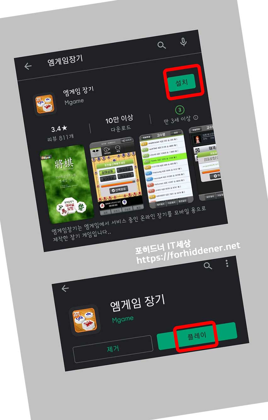 엠게임장기 설치 를 데스크톱에서는 앱플레이어 를 통해서 install 후 플레이를 할 수 있고, 모바일 환경에서는? 아이폰 iOS 에서는 앱 버전이 낮아서 플레이가 안되고, 안드로이드 기종의 스마트폰에서 플레이가 가능합니다. 최신/구형 폰에서도 모두 정상 작동이 됩니다. Play 스토어 앱을 실행 후