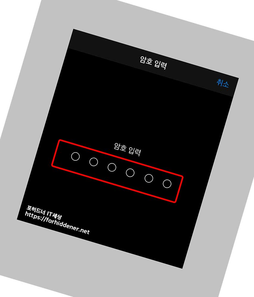 그러면 초기 디스플레이 화면에서 암호를 풀때 사용하는 여섯자리 숫자를 입력합니다.