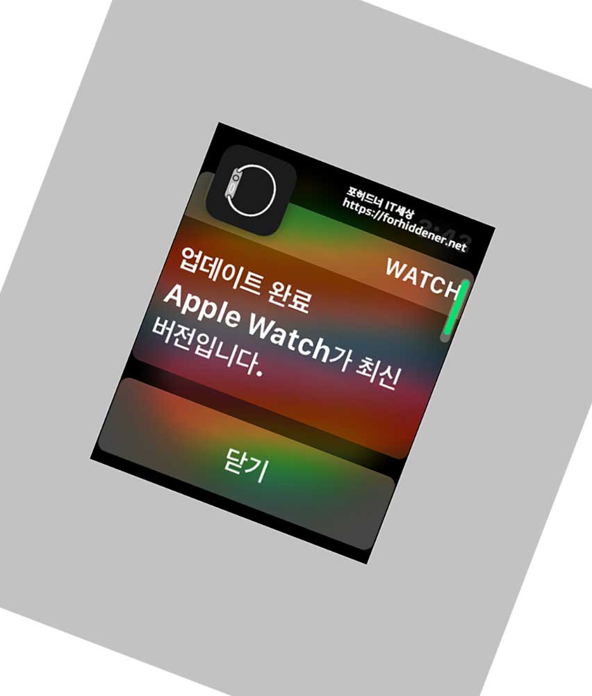 Apple의 전자시계 소프트웨어를 최신버전으로 Update를 완료하셨다면? 첨부한 스크린샷과 같이 업데이트 완료 라고 나올 것입니다. 이제 기능을 사용하기 위해 간단한 설정만 해주면 바로 사용이 가능합니다. 그러기 위해서는